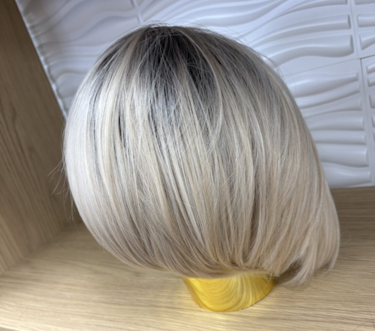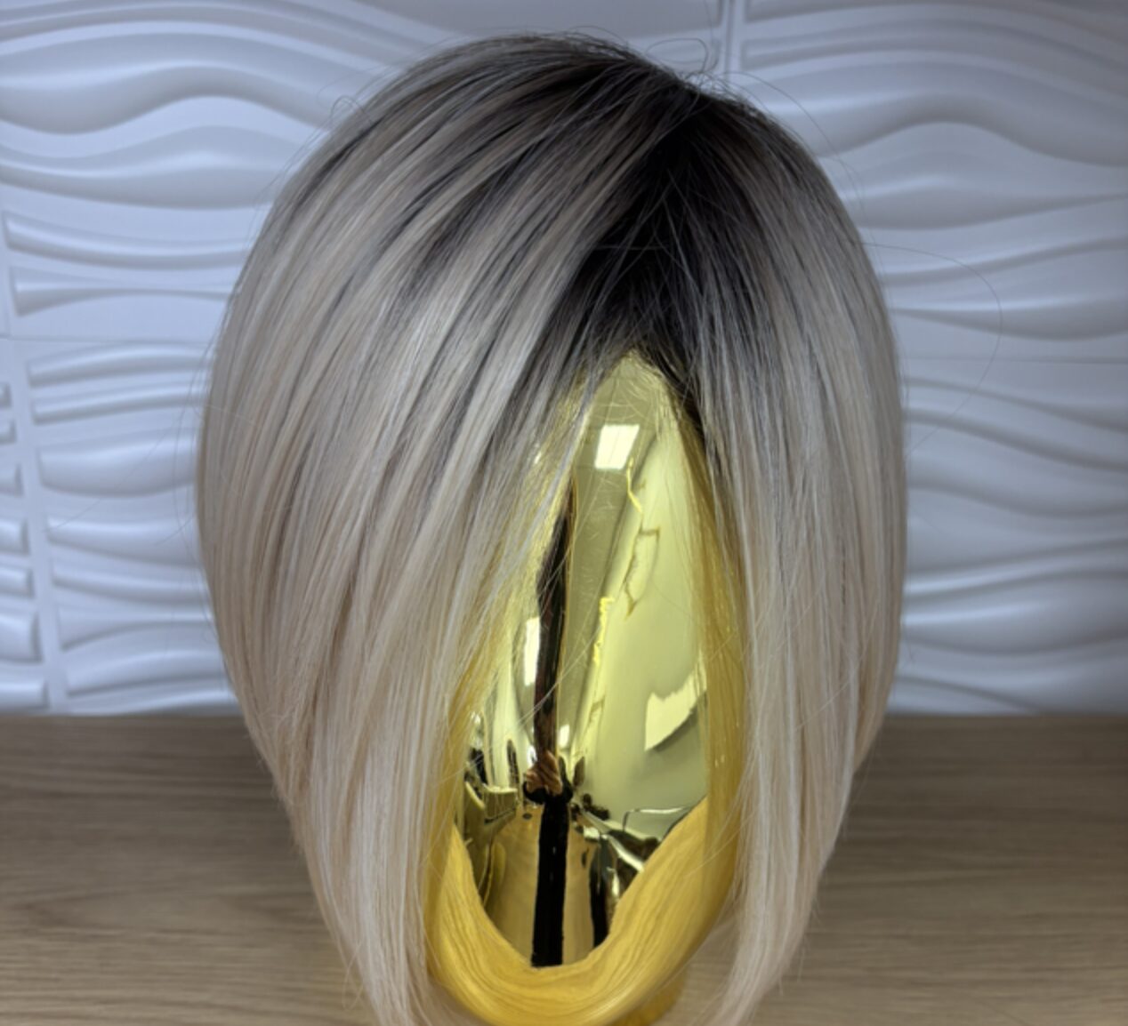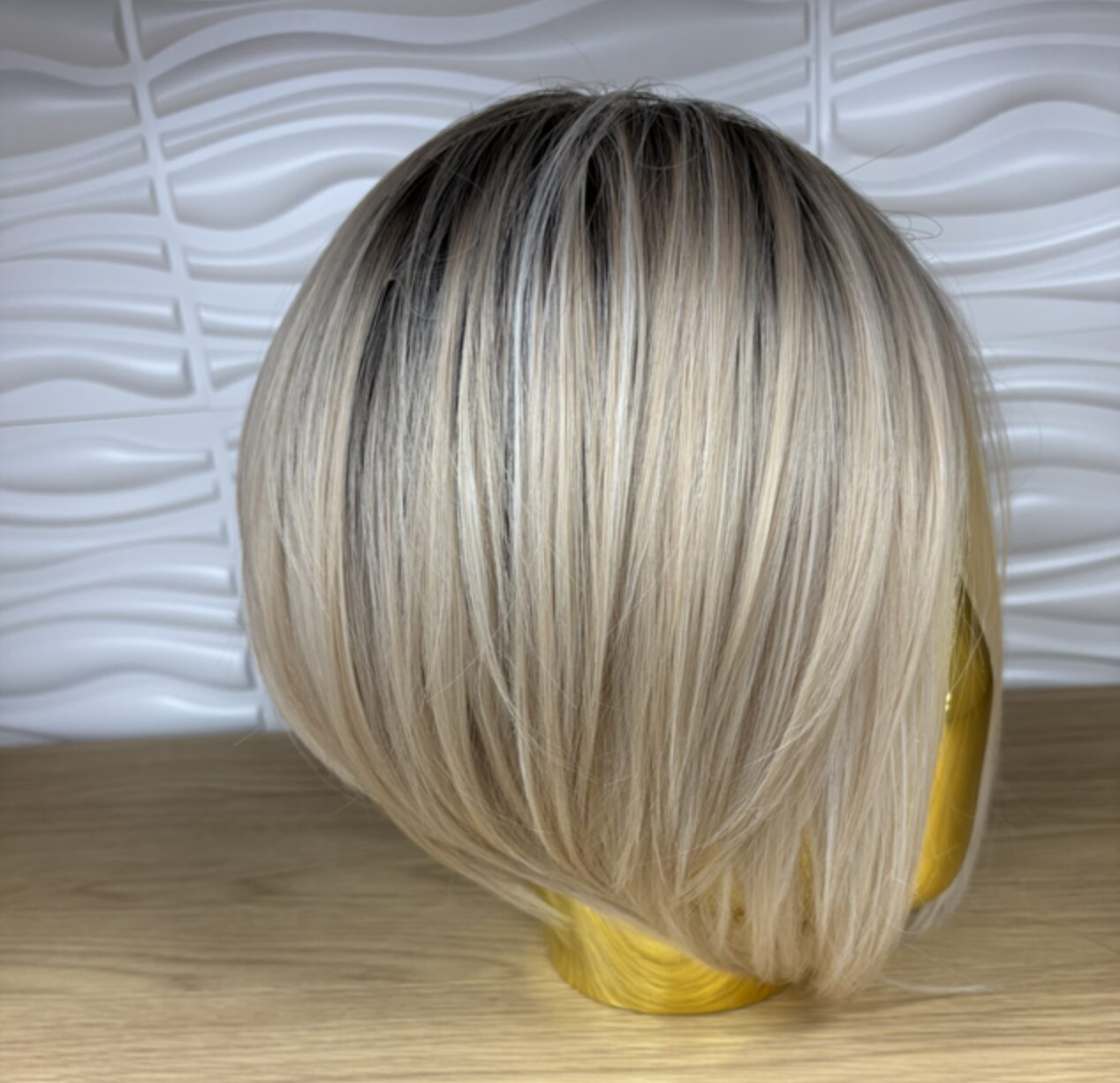 Rooted blonde concave bob synthetic wig
